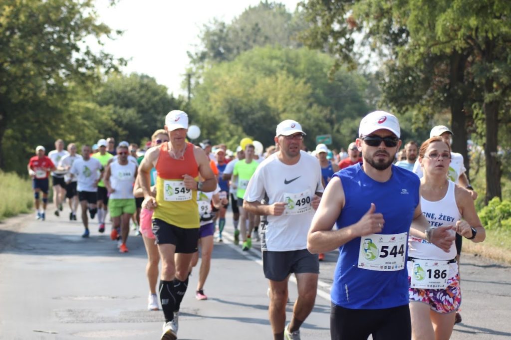 Od początku była ze mną moja głowa i mój problem z uwięzionymi kluczykami. Biegłam wydawało mi się powoli, wsłuchując się w swój organizm. Trasa była świetnie oznaczona, zgodnie z moim zegarkiem co 1km. Jak dla mnie idealna pod życiówkę – płaska. Na 7km dogoniła mnie Iwona, chwilę porozmawiałyśmy, ale wiedziałam, że chce walczyć o swój wynik i nie chciałam męczyć jej rozmową. Do 9km biegłam sobie spokojnie, jak się okazało tempem 4:50-5:00 i dobrze się czułam. Stwierdziłam, że skoro jest dobrze to może ruszę tuż za punktem nawadniania (9,4km) zaraz po tym jak zjem żel. Od tego momentu zaczęłam biec po 4:30. Raz szybciej, raz wolniej bo wiał mocno wiatr mimo iż organizatorzy obiecywali wiatr w plecy 😉 Na 16km wzięłam power bombę, żeby sprawdzić przy okazji jak działa odstawienie kawy na tydzień, a potem taka mieszanka. Do końca trasy wyprzedził mnie tylko jeden mężczyzna, a inni dopingowali, komentowali. Nie powiem – miłe uczucie. W większości przypadków w trakcie biegu szukam kobiet przed sobą i staram się je powoli doganiać i wyprzedzać. Tak też było i teraz. To pomaga mi na głowę jeśli mam kryzys. Traktuję jak dodatkową motywację. 500 metrów przed metą stała JoAsia mocno kibicując. Jak zawsze powoduje uśmiech na mojej twarzy i daje power. Zebrałam jeszcze siły na mocny finish i ostatecznie zajęłam 115 miejsce w Open i 9 wśród kobiet. Tuż za metą dostałam piękny medal, butelkę wody i miłą wiadomość – okazało się, że jestem 3 w kategorii K30! Ależ się ucieszyłam. Na mecie jak zawsze jest czas na rozmowy, wymianę opinii o trasie, organizacji i samym biegu. Tutaj zdania mieliśmy podzielone. Część się męczyła przez pogodę a część dobrze bawiła na trasie. Po dekoracji wsiedliśmy w autobus podstawiony przez organizatorów, który zawiózł nas na start. Z nami jechała ekipa ENTRE.PL Team i wiadomo było, że będzie wesoło.